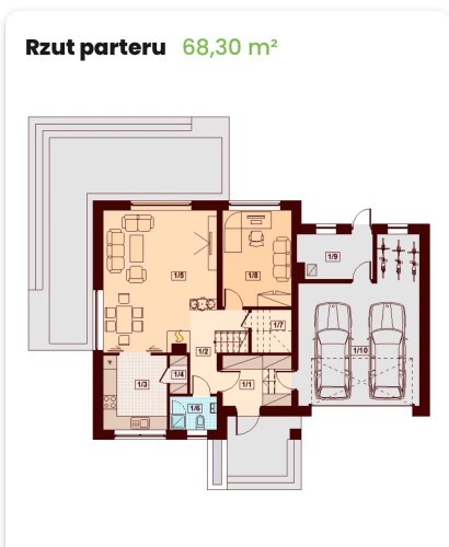 • Garaż w bryle budynku o powierzchni 34,91 m²