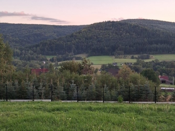 Płaska, nasłoneczniona działka położona jest na wzniesieniu z pięknym widokiem w każdym kierunku.