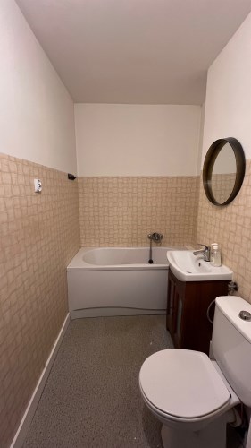 W łazience wymieniono instalacje wodno-kanalizacyjne.